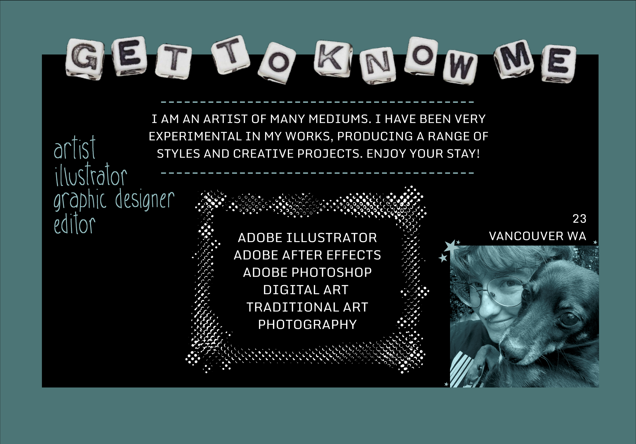 MY PORTFOLIO WILL PRESENT YOU WITH A RANGE OF PROJECTS, EACH BEING AN EXPRESSION OF MYSELF AND MY INTERESTS. EACH PROJECT ALLOWING ME TO EXPLORE MORE OF MYSELF AND MY ABILITIES. ENJOY!